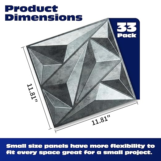 - Real 3D Design: Diamond pattern with 1 inch raise design makes our wall panels more eye-catching. A box comes in 33 tiles, which covers 32.Sq.Ft.