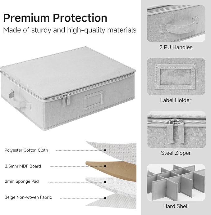 - Multi-Functional: Features customizable dividers to fit varied cup sizes, such as precious seasonal and porcelain cups, mugs, stemware, and small ceramic pieces, keeping fragile drinkware organized and protected with padded walls.
