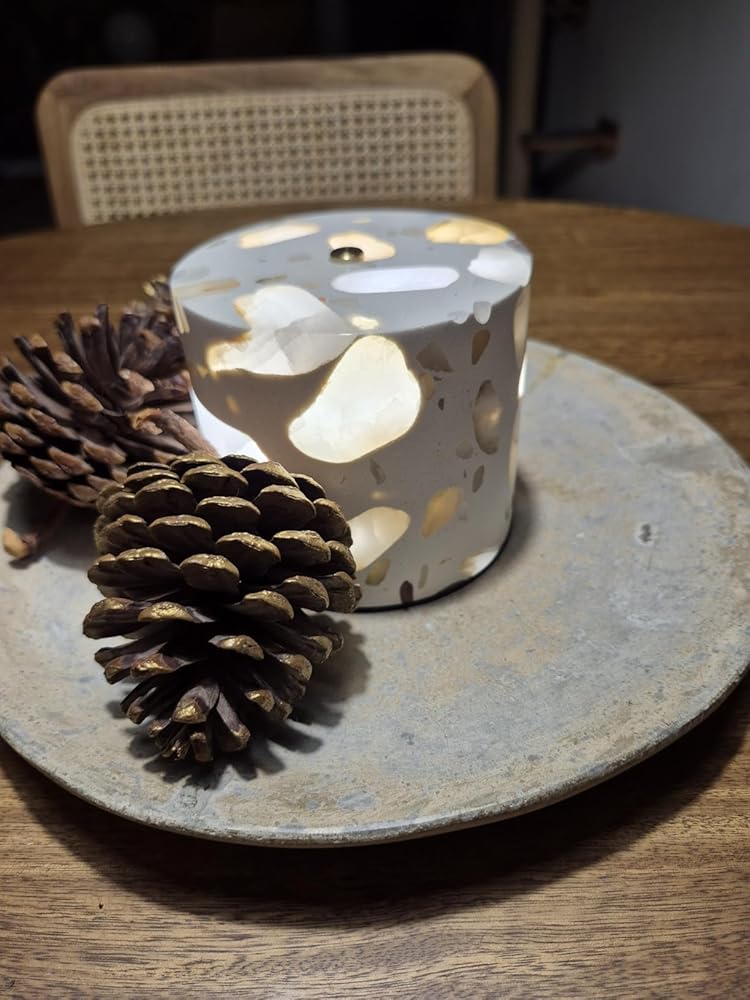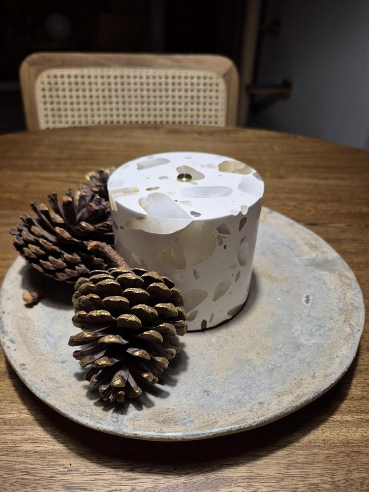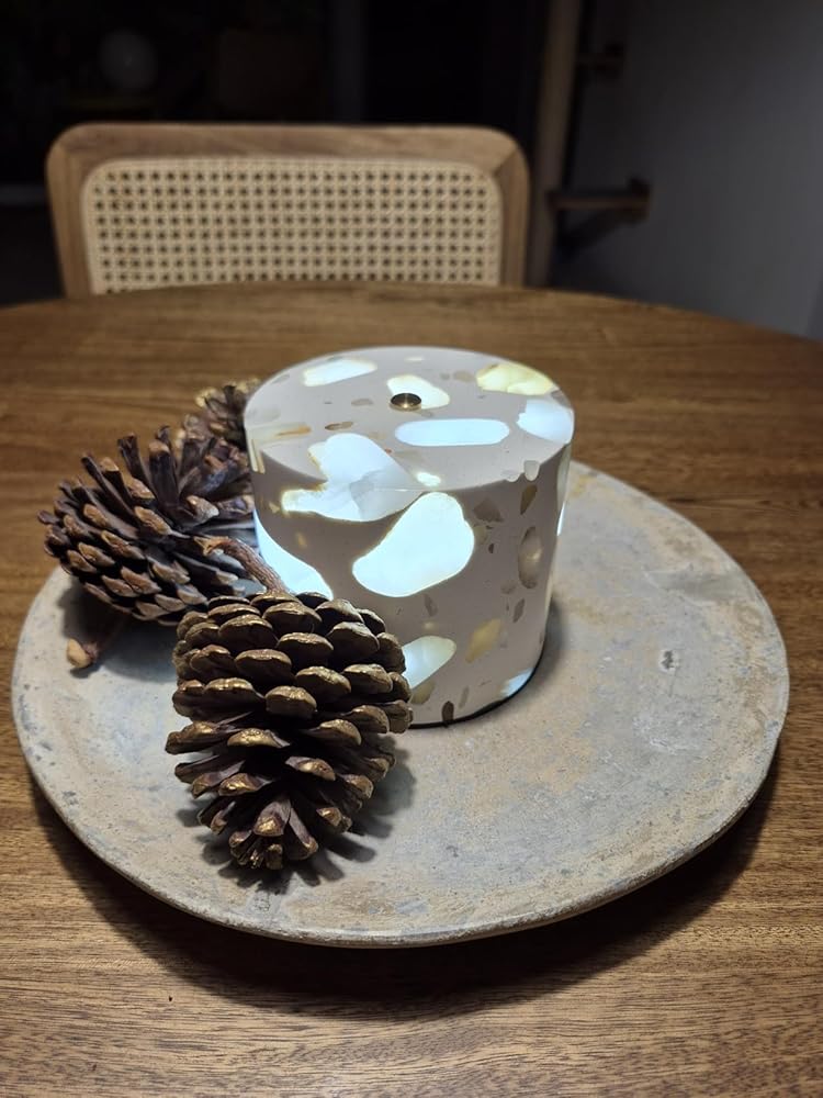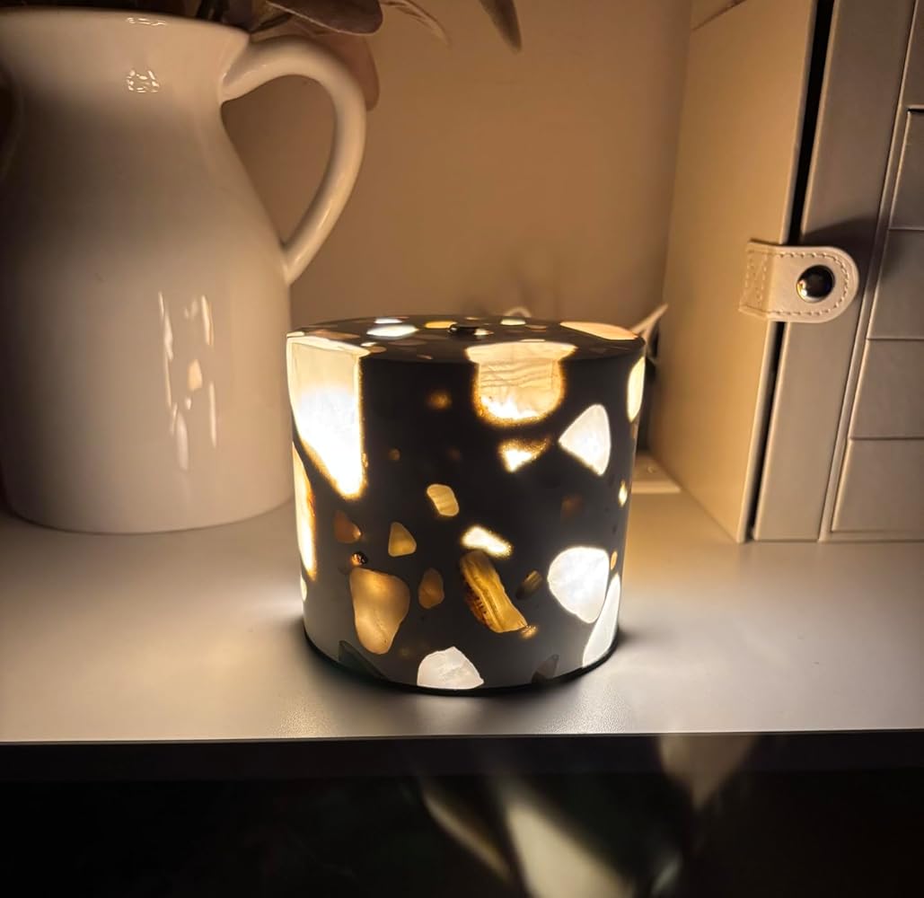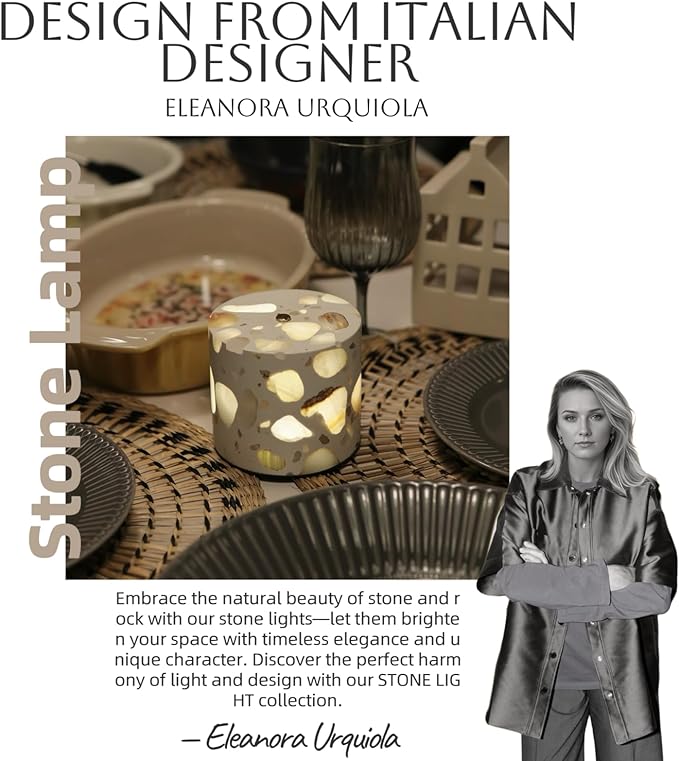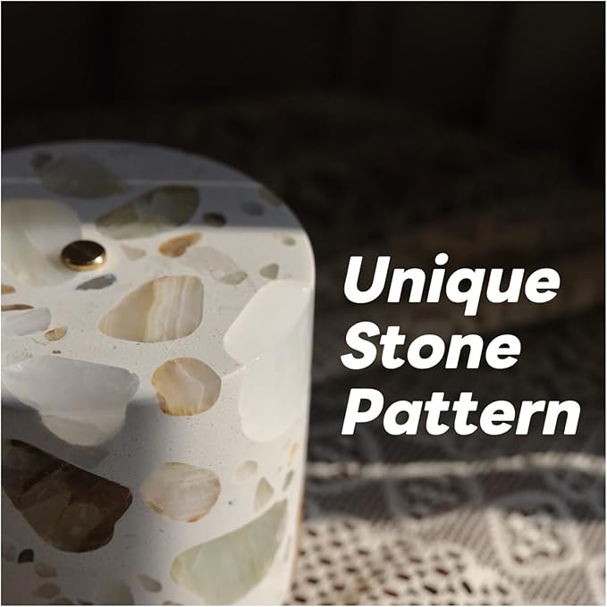 - [Unique Artistry] Hand-polished ivory terrazzo blended with premium agate, each lamp reveals an irreproducible natural vein, exuding zen energy that soothes your mood while elevating the aesthetics of the space.