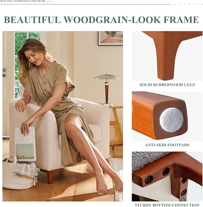 - Sturdy and Long-Lasting: Constructed with a solid wood frame and high-density sponge, this set is designed for long-lasting comfort without deformation. The rubber solid wood legs come with anti-skid pads at the bottom for balance and floor protection, supporting up to 300 pounds.