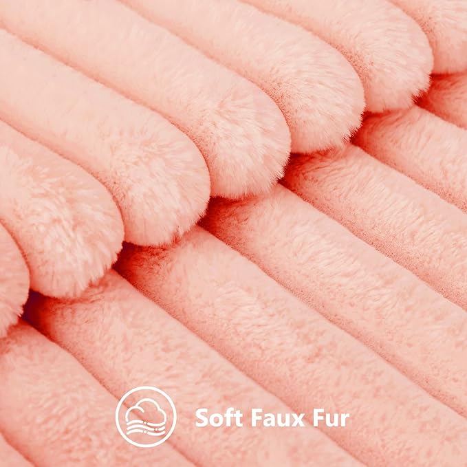 decorUhome Faux Fur Throw Pillow Covers 20x20 Set of 2, Decorative Soft Plush Striped Neutral Euro Pillow Covers with Velvet Back for Bed, Living Room Home Decor, Blush Pink