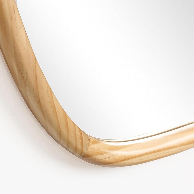 - Organic Modern Asymmetrical Mirror: This irregular-shaped square wall mirror with a natural pine frame and soft rounded corners blends modern aesthetics with natural charm, bringing warmth and beauty to your living space.