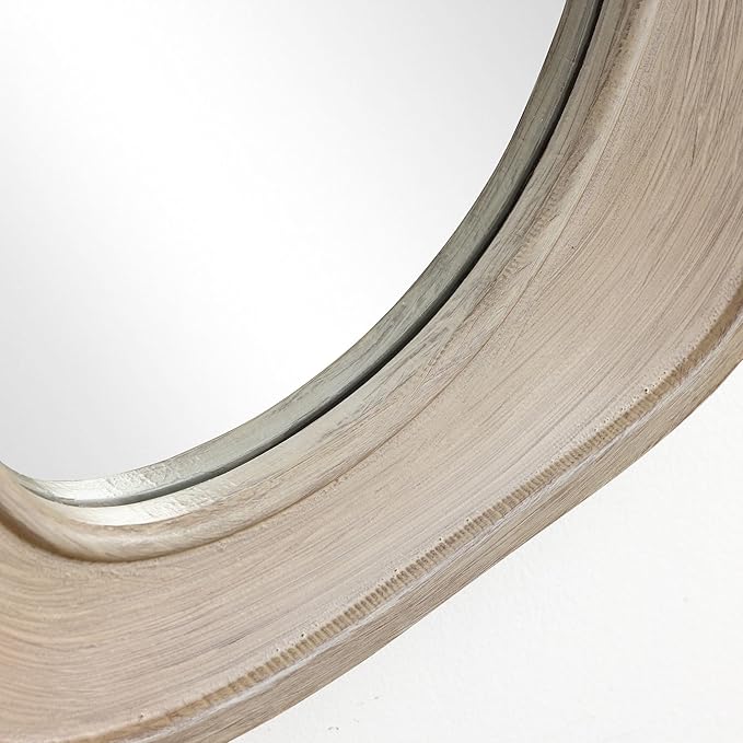 - Organic Modern Asymmetrical Mirror: The irregular oval shape breaks from traditional square and round mirrors, featuring a unique organic contour. Its soft wood grain blends nature with artistry, making it perfect for modern interiors and various decor.