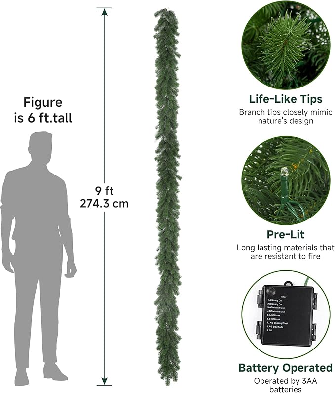 - Decoraciones navideñas únicas: crea un ambiente festivo con nuestras guirnaldas artificiales de Navidad; el verde natural complementa las decoraciones tradicionales de Navidad, creando un ambiente cálido y acogedor en tu hogar. Esta es una decoración navideña primaria que realmente transforma tu hogar en una pintoresca escena navideña.