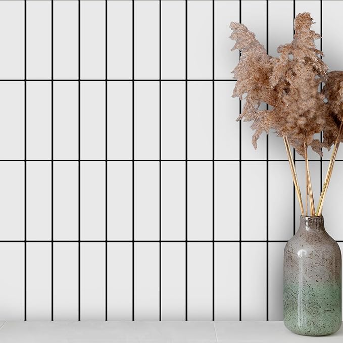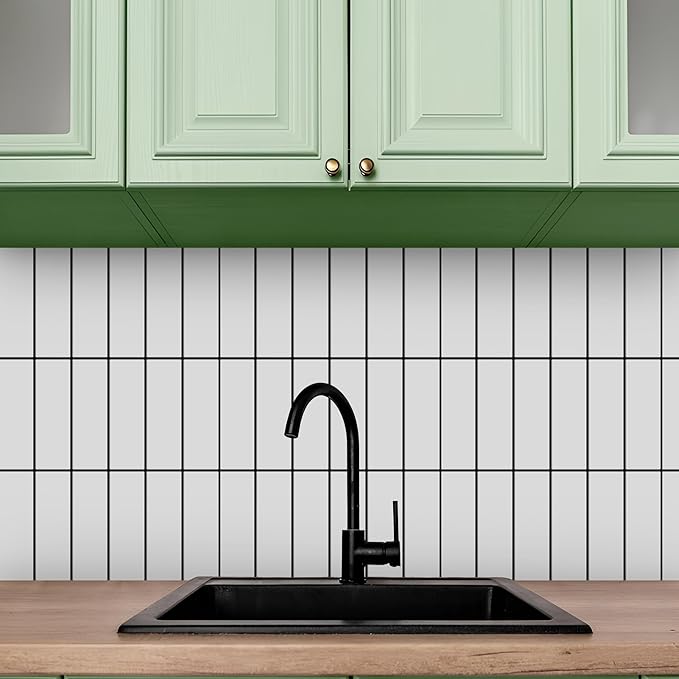 5 Pack Peel and Stick Backsplash Subway Tiles, Extra Thick 3D Wall Panels, Heat & Water Resistant,Easy DIY Kitchen,Bathroom, Laundry, Fireplace & Rental Home Wall Décor (12 x 12 in), White Black Grout