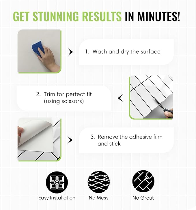 - Strong Commercial Adhesive – Features a powerful self-adhesive backing that sticks securely to smooth or lightly textured walls without grout or messy glue—perfect for long-lasting performance.