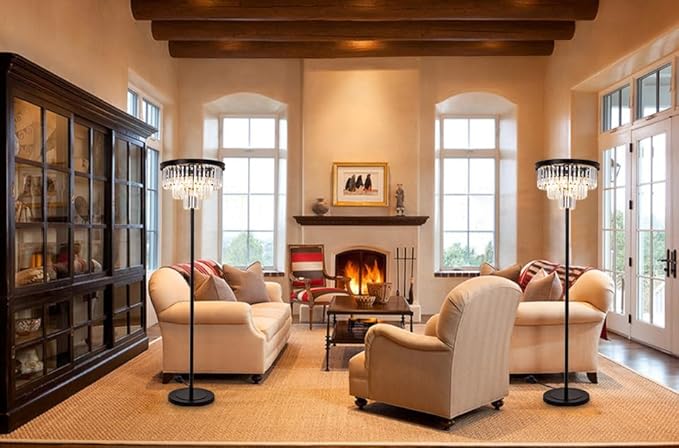 - Ideal Home Decor: Combining the look of a crystal chandelier with the practicality of a freestanding floor lamp, this light provides multi-directional lighting for a gentle, even glow in any room. Experience its brightness and sophisticated built-in your living room, dining room, bedroom or hallway.