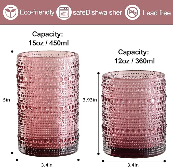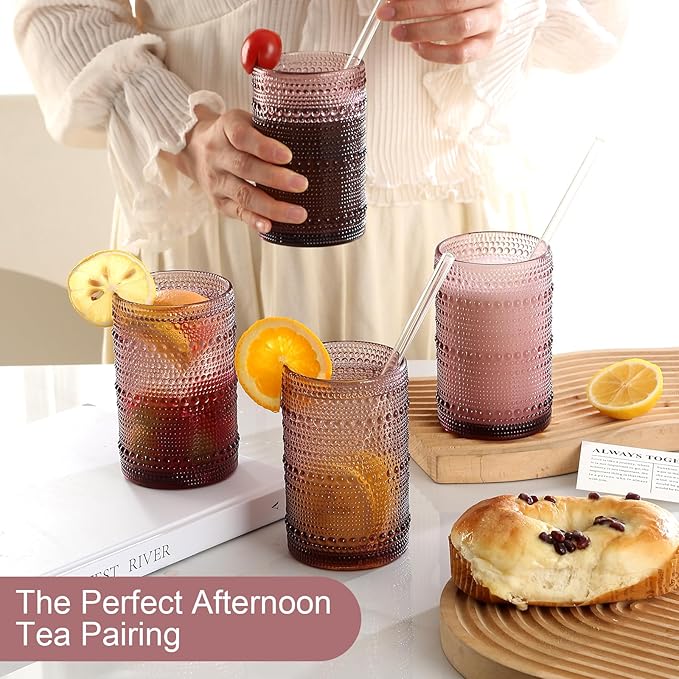 - PACKAGE DETAILS: includes 4 pcs 12oz vintage hobnail drinking glasses,4 pcs 15oz vintage hobnail drinking glasses,4 pcs glass straws, 1 pcs straw cleaning brush, 1 pcs cup cleaning brush