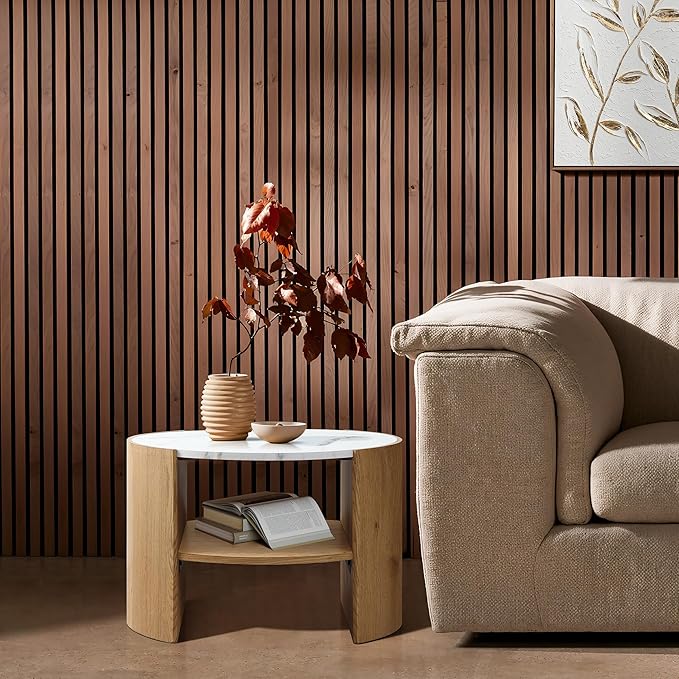 - Elegant & Modern Design: This round living room coffee table combines a luxurious faux marble top with a warm oak wood base, this small table with storage complements various home decor styles, including contemporary, mid-century, and Scandinavian.