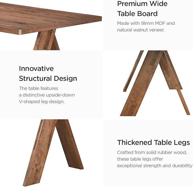 - Striking Contemporary Design: The unique A-frame leg structure gives this wood dining table distinctive character that complements both modern and rustic interior styles.