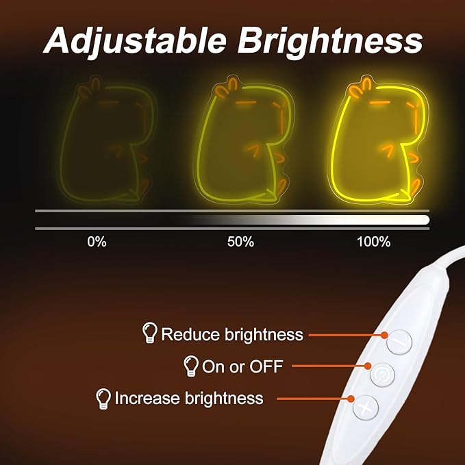 - 【Creative Design】:"Transform your child's room into a fairytale wonderland with our adorable Capybara Neon Light! This glowing giant guinea pig becomes your little prince's/princess's new bedtime companion, its gentle light watching over sweet dreams. Perfect for animal-themed nurseries, play corners, and as the star decoration at birthday parties! Makes a wonderful gift that sparks joy and imagination!"