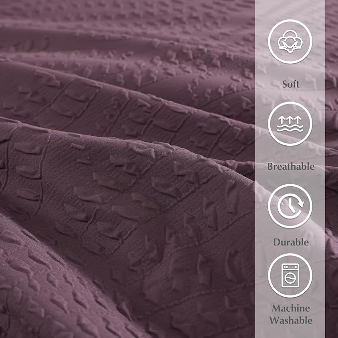 - Botanical Textured Design: Designed in classic eggplant. Featuring simple yet elegant 3D Botanical Leaf design, coming with matching shams, sheets. Vibrant garden style which perfectly blends fashion and abstract art, add an extra layer of art style to match your room décor and brighten your rooms.