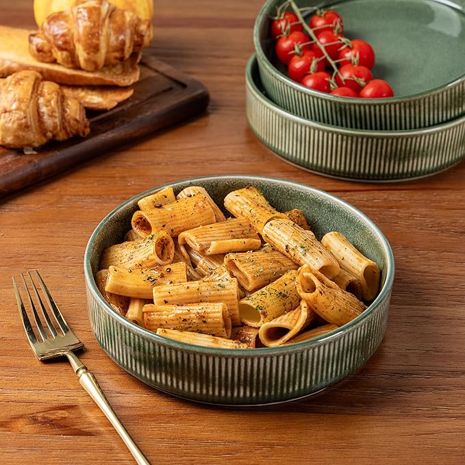 - Premium Stoneware Set of 6 Deep Pasta Bowls (7.5" Wide): Enjoy ample serving space with these perfectly sized 7.5-inch wide pasta bowls, The set includes 6 bowls.Perfectly designed not just for pasta, but also ideal for serving salads, fruits, oatmeal, cereal, soups, rice bowls, desserts, and more – from breakfast to dinner.