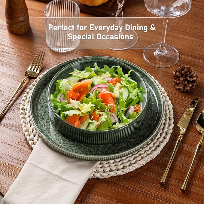 - Stylish Double Reactive Glaze Finish: Features a beautiful double reactive glaze that creates unique, rich, and vibrant color variations and depth, adding an elegant touch to your table setting. It perfect for daily using and special occasion。