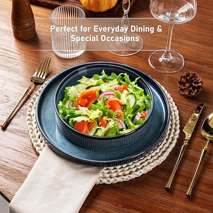 - Stylish Double Reactive Glaze Finish: Features a beautiful double reactive glaze that creates unique, rich, and vibrant color variations and depth, adding an elegant touch to your table setting. It perfect for daily using and special occasion。
