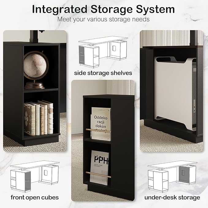 - Under-Desk Storage: The executive adjustable desk is designed with integrated under-desk storage space. The under-desk space on the right is enough to place your computer host, and the under-desk space on the left provides a good place for your books and small items