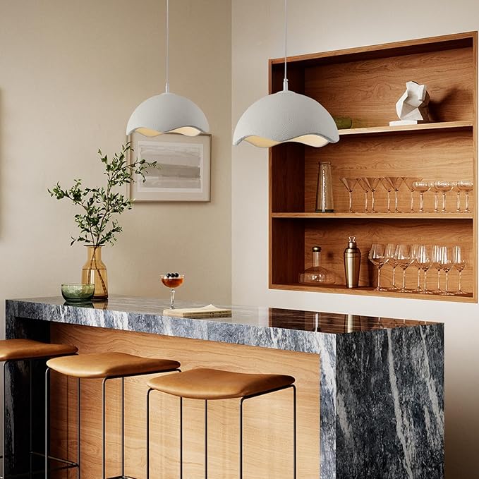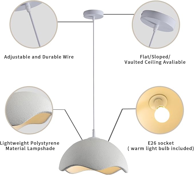 - 【Unique Pendant Lighting】 High-density polystyrene lampshade, hand-molded, emphasizing smooth and retro living aesthetics. This chandelier may be the most elegant restaurant lamp you have ever seen.