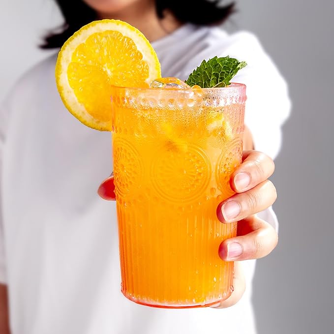 - UNIQUE AND VINTAGE DESIGN: The retro flavor makes this romantic plastic water glasses beautiful and unique. Our vintage plastic drinking glasses are embossed designed with 12 plastic vintage glasses for your favorite juice and cocktail drinks. The plastic drinking glasses have been designed to fit any kind of tableware.