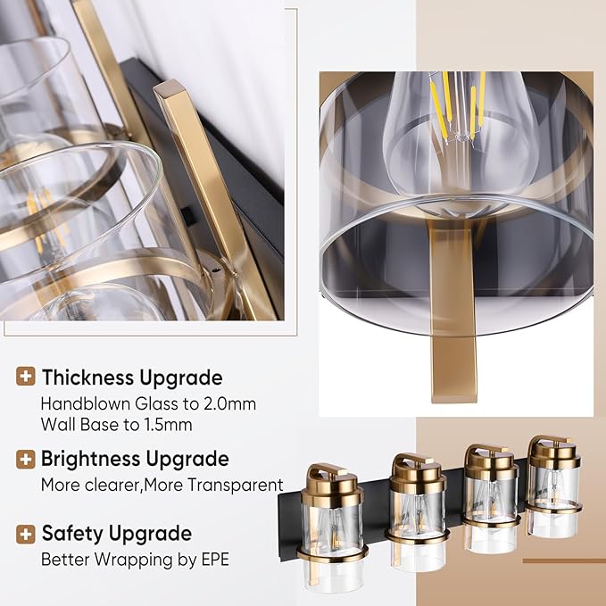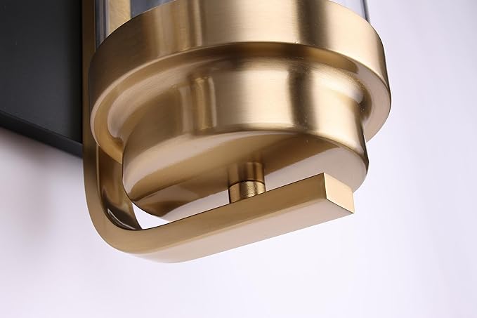 - Product Feature: Hardwired.Black gold bathroom vanity light fixture with clear glass shade;Farmhouse Wall Sconce lighting is easy to install and can be mounted as either up light or downlight.