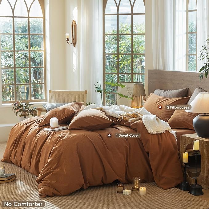 - Great Texture & Comfort: Looks like linen, feels like cotton, with a lived-in, slightly wrinkled look, which offers that feeling of staying at a nice resort where the duvet covet sets are always crisp, clean and comfortable. The relaxing look of this dark orange bedding set and the gently textured feel make it hard to get out of bed