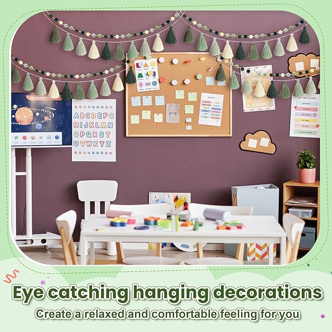 - Soft and Smooth Tactility: tassel garlands are made of quality cotton thread and pom pom balls are made of felt, which has soft and smooth tactility, durable and reusable, not easy to fall off or fade, can create a relaxed and comfortable feeling for you