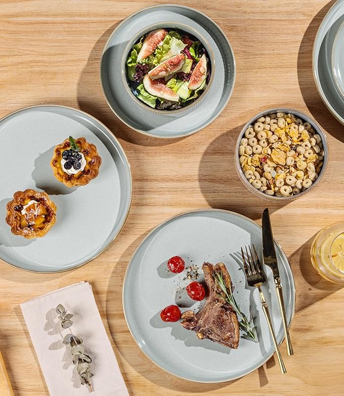 - STACKABLE & EASY TO CLEAN: Our dinnerware set is designed to be stackable. making it ideal for space-saving storage in your kitchen cabinets or pantry. This design helps free up space for other dining sets. The smooth surface makes them easy to clean. You can wash them with soap and hot water, or simply place them into your dishwasher.