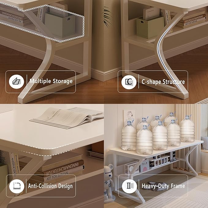 - WITH STORAGE SHELF - There is a book shelf design under the long study table, which can make the 2-person desk more stable and increase the storage space. The shelf is 14.6" above the bottom which allows you to stretch your legs comfortably. Storage shelf arrange your books, and office items well. Simple Design, large Storage;
