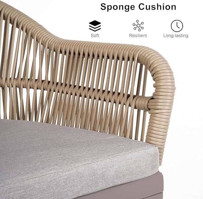 PURPLE LEAF 5 Pieces Oversized Square Patio Dining Set with Outdoor Aluminium Dining Table and Woven Chairs Modern Metal Furniture Cushions Sets for Garden Yard Indoor Decor Kitchen Champagne