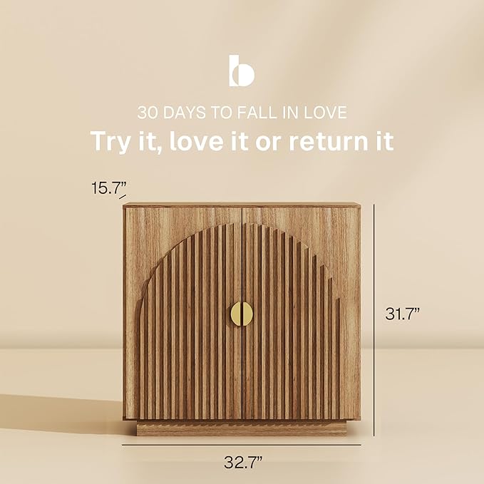 - Elegant Arched Design & Exquisite Handcraft: The BELLEZE Buffet Cabinet with Storage features symmetrical arched door panels, with flowing curves and hand-nailed decorative strips that create a layered, modern, and elegant look. The golden semi-circular handles complement the overall design. This fluted sideboard cabinet is perfect for adding both style and function to your home.