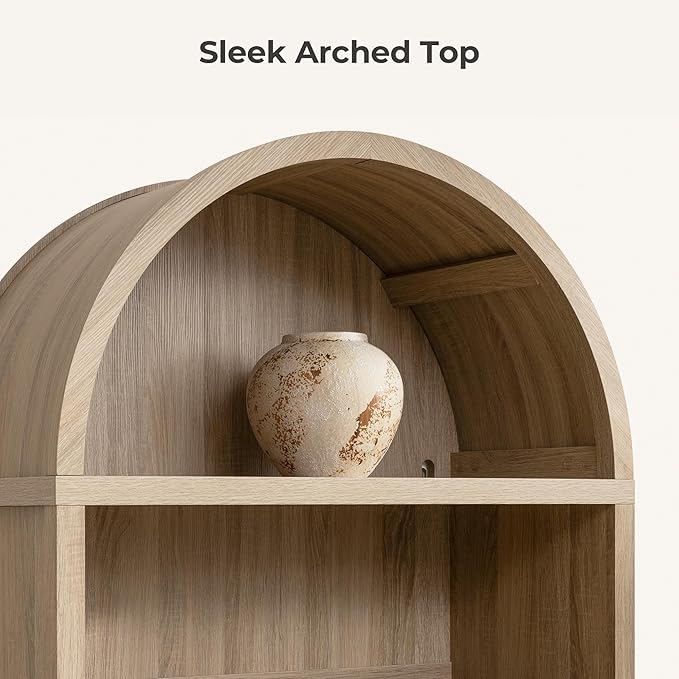 • 【Safe & Secure】- This bookshelf with storage features a safe anti-tip kit that prevents the shelf from toppling. This ensures the bookcase with doors remains stable and secure, especially in households with children or pets. You can rest assured that your arched bookshelf is safe, allowing you to enjoy your items without concern. The smooth, burr-free surface adds an extra layer of safety during use.