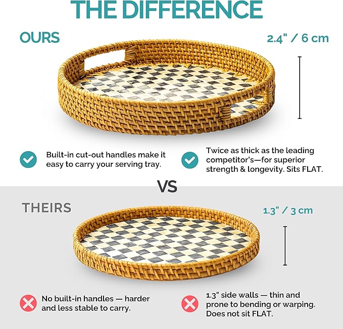 - ⭐️ PRACTICAL HANDLES, EASY CARE: Built-in cut-out handles make it easy to carry your serving platter between rooms. The rattan is low-maintenance—simply wipe with a damp cloth and dry thoroughly. Ideal for busy homes that value natural, lasting boho decor.