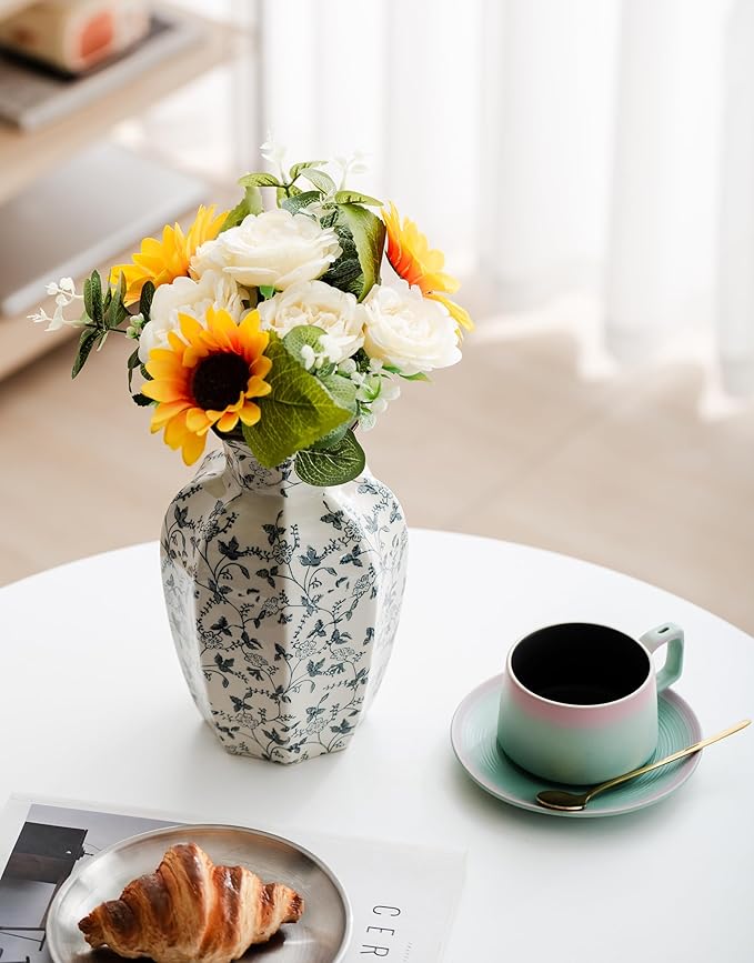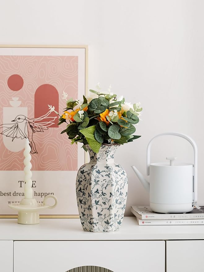 - 【ELEGANT DESIGN】This handcrafted Chinese-style vase features beautiful blue and white patterns and an elegant hexagonal outline, making it perfect for enhancing your home decor. As a blue and white vase, its floral patterns add a unique charm to any setting.