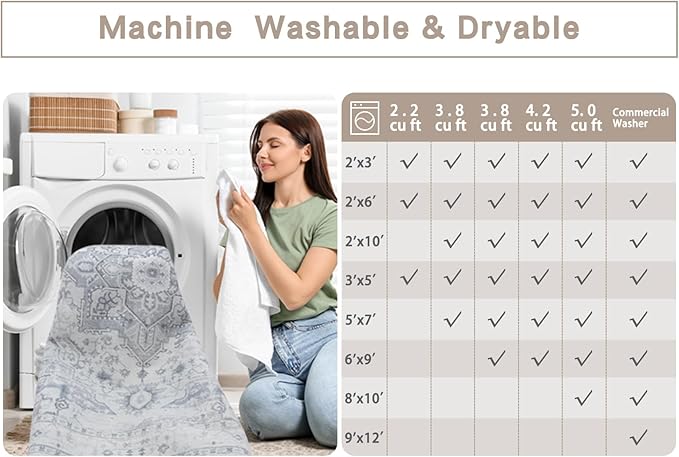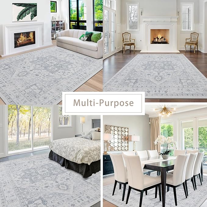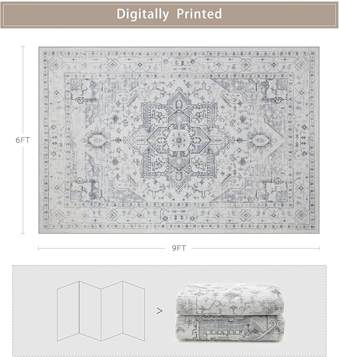 - Machine Washable Rug & Easy to Care:The washable rugs 6x9 can be machine washed,vacuumed or broom cleaned. In addition,we include a rug cleaning tool, perfect for ridding the rug of lint, fluff, pet hair, crumbs, and other dry debris, which keeps it tidier and prepares it better for a machine wash,so the grey area rug is ideal for those high-traffic areas in houses with children and pets