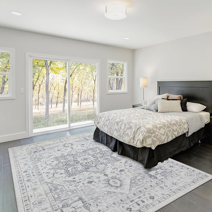 - Non Slip Dinning Room Rugs:This 6x9 rugs for living room with an premium non skid rubber backing,which helps to keep the grey rugs for bedroom in place.No longer have to worry about slipping or tripping on the floor carpet,which is especially important with young children and the elderly in the house