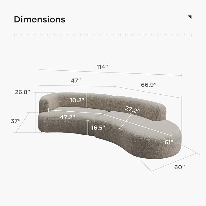 - Easy care: The sectional couch for living room is easy to assemble, and comes in a box with 2 fluffy throw pillows. Simply wipe clean with a damp cloth. Overall dimension is W114 x D60 x H26.8, weight limit is 1000 lbs.