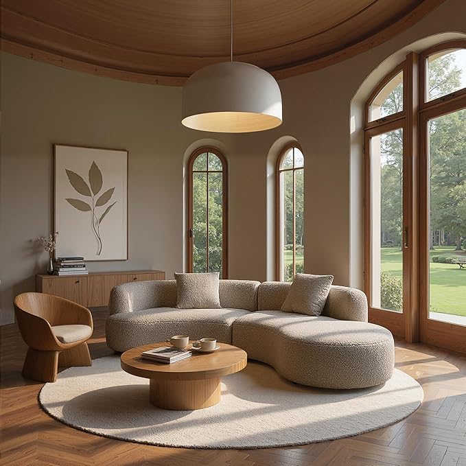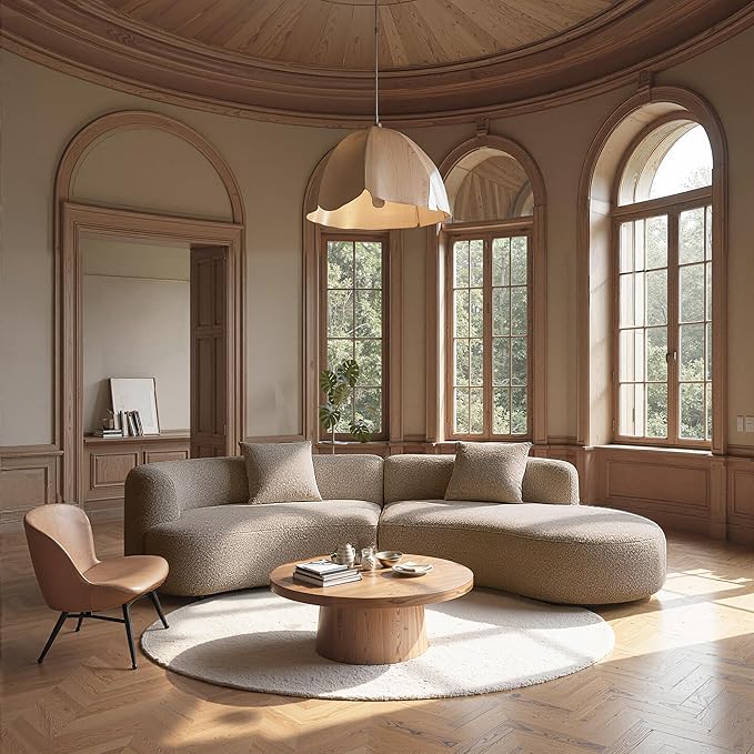 - Modern sectional sofa set: The gently curved silhouette of this L-shaped sofa for living room creates an eye-catching focal point, with its organic form bringing sophistication and contemporary elegance.