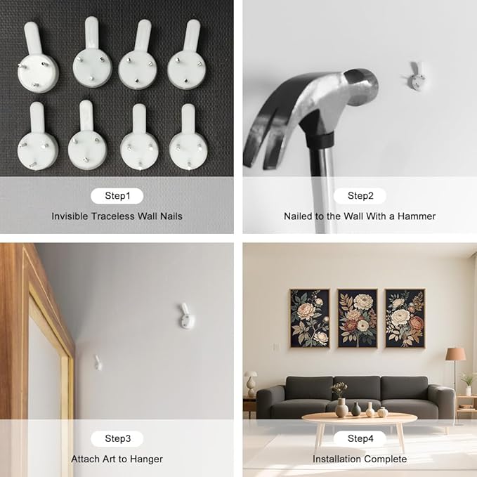 - 【Effortless to Display】The framed dark floral wall art set includes three pieces, each measuring 24×36 inches×3pcs (60×90cm×3pcs). We provide a complete hanging kit, making it easy for you to hang the artwork when it arrives. Simply measure your wall space and effortlessly display the art.