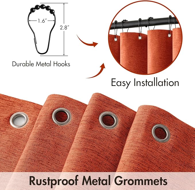 - Package Includes: Comes with 1 faux linen shower curtain featuring reinforced metal holes and 12 bonus metal hooks,rust resistant and easy to slide.You will enjoy the added convenience of these bonus hooks while saving on the cost and effort.