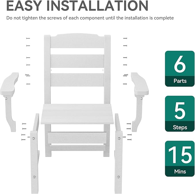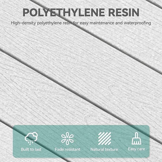 - Versatile Elegance: HDPE outdoor dining set boasts minimalist design with classic colors; The wood-like texture adds sophistication, blending easily with your patio, courtyard, garden, or porch; Ideal for gatherings of up to 6 people