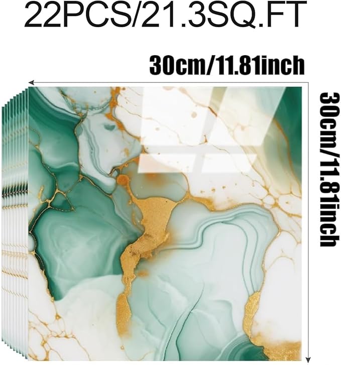 22pcs Marble Peel and Stick Backsplash Waterproof Washroom Wall Panels, Peel and Stick Tile, PVC Foam Wall Panels for Kitchen,Bathroom,Living Room,Green and Gold(Not Real Tile,11.8" x 11.8")