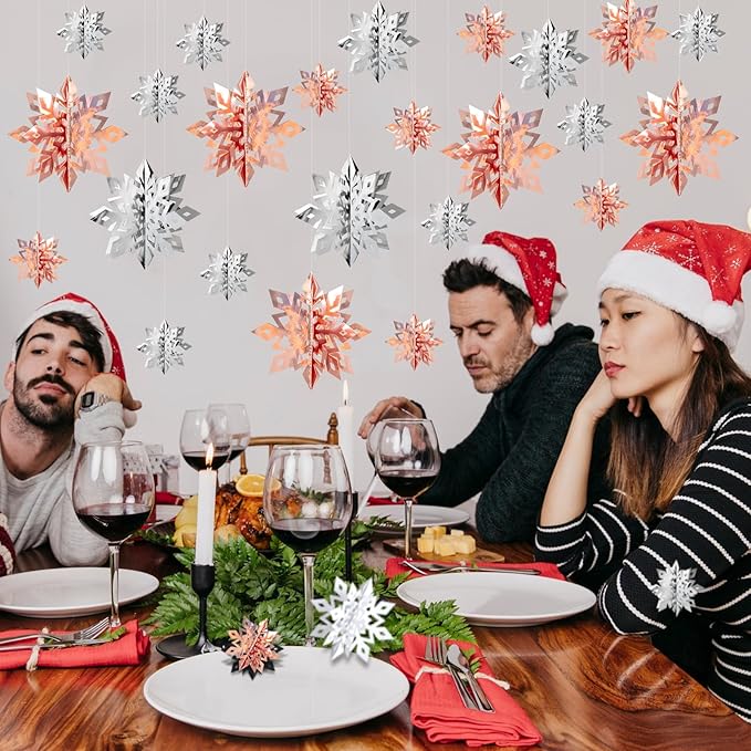 - Super Value Set: This pack includes 18pcs silver snowflakes and 18pcs rose gold snowflakes in three different sizes. Simply fold along the sewn seam to create stunning 3D hanging snowflakes! These complementary colors enhance any winter-themed setup, creating a dazzling visual effect perfect for your home or holiday parties