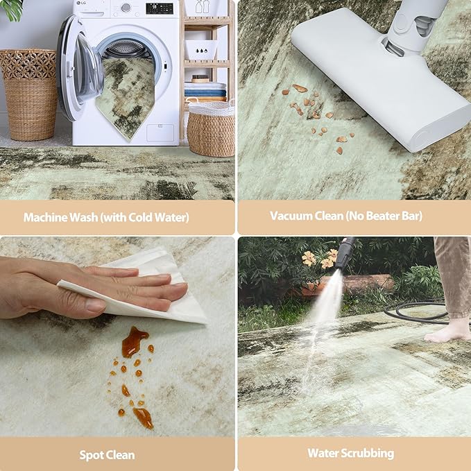 - Easy Maintenance: This 5x8 rug is machine washable (6'x9' and above recommended for commercial laundry). Regular vacuuming and spot cleaning keep it fresh and fade-resistant. Low pile height works with robotic cleaners—avoid bleach for the best care