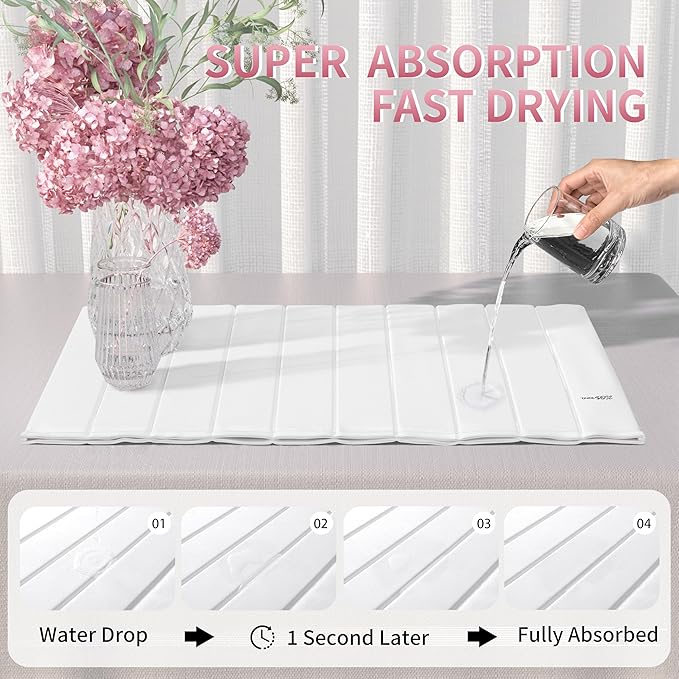 Stone Drying Mat for Kitchen Counter-Super Absorbent PU Dish Drying Mat, Quick Dry Stone Mat Kitchen for Dishes, Bottles & Cups, Large Foldable Stone Dish Drying Mat, Non-Slip Kitchen Mat