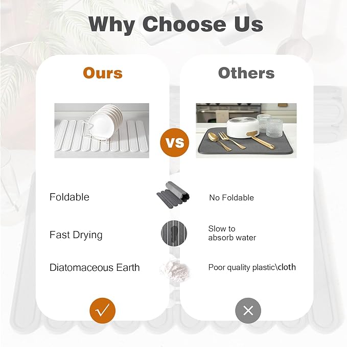 - FOLDABLE & SPACE-SAVING : This foldable large stone dish drying mat saves up to 60% of space when stored, making it perfect for compact kitchens. It can also be trimmed to any size, allowing full customization to suit your sink, countertop, or drying rack needs.