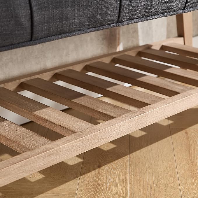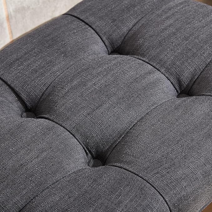 Farmhouse Storage Entryway Bench with Shoe Shelf, Linen Fabric Upholstered 2 Tier Button Tufted Bench with Wooden Frame for End of Bed/Hallway/Reception/Living Room, Charcoal