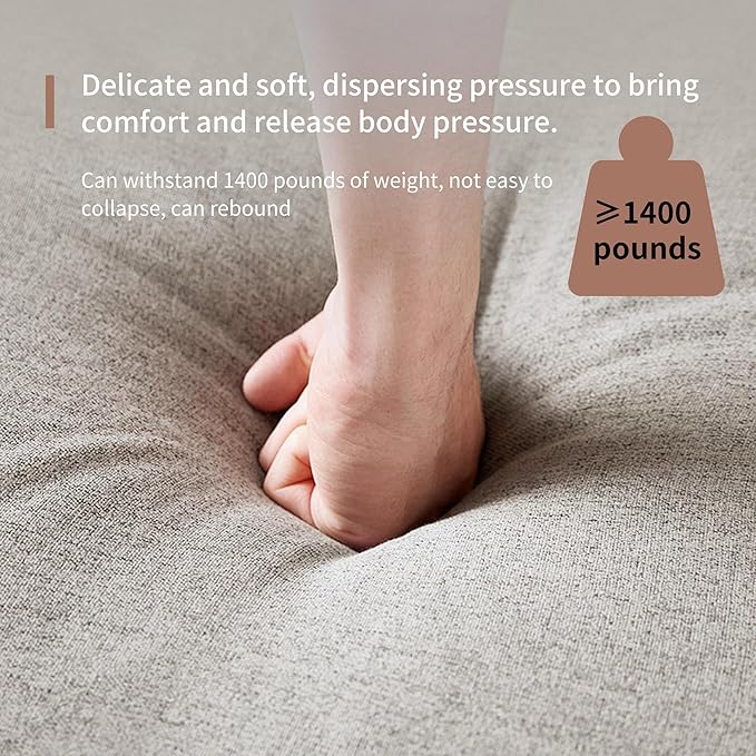 - 【Durable and Sturdy Frame Design】The sofa features a high-quality solid wood frame that has undergone rigorous drying and anti-insect treatment, ensuring durability and resistance to deformation. Reinforced support bars and anti-slip foot pads at the base provide enhanced stability while protecting your floors from scratches. With a weight capacity of up to 1100 lbs, this sofa ensures safety and reliability, even for multiple users at once.