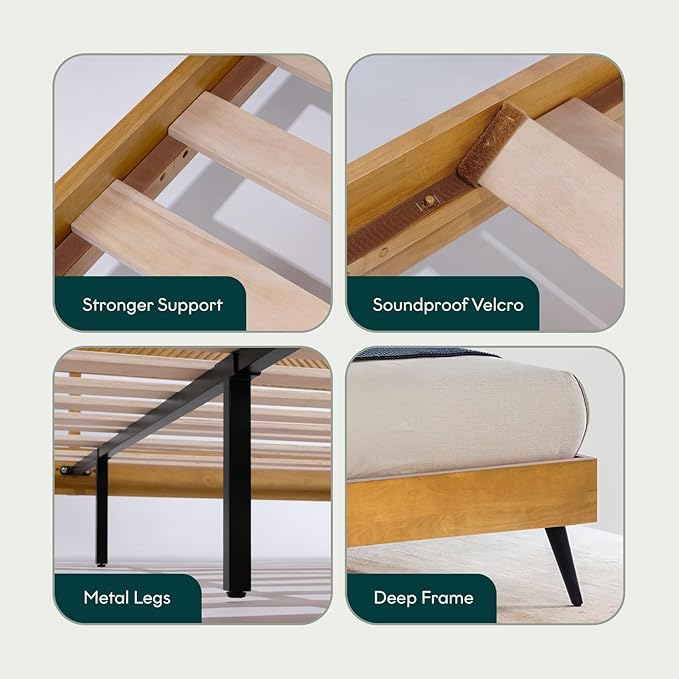 - STURDY SLAT SYSTEM – NO BOX SPRING NEEDED: Engineered with 12 reinforced wooden slats and a heavy-duty steel frame, this platform bed supports your mattress securely without requiring a box spring. King size holds up to 800 lbs, Queen up to 600 lbs