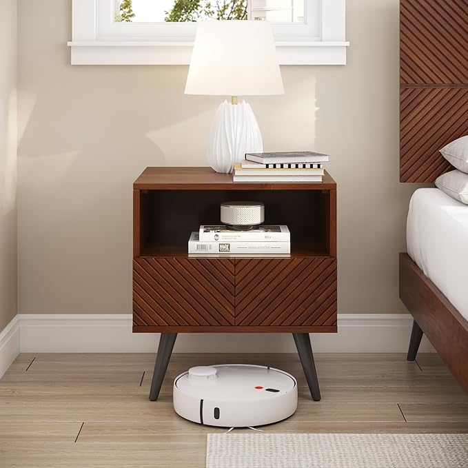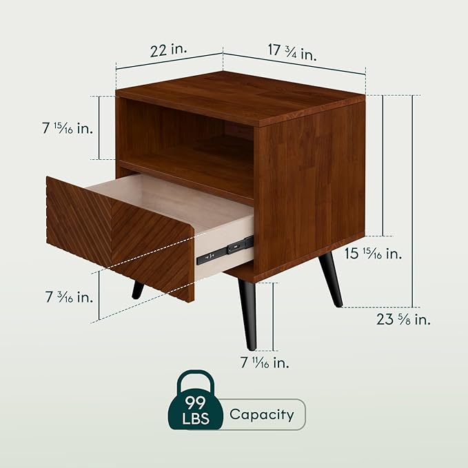 - SOLID ACACIA WOOD + ANTI-WARP PANELS: Made with acacia wood and anti-warp MDF, this nightstand delivers long-lasting durability. The Teak Brown or Walnut finish enhances the natural wood grain for timeless appeal