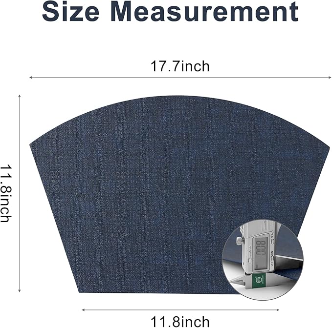 Homaxy Round Table Placemats Set of 6, Washable Wedge Shaped Faux Leather Table Mats, Wipeable Kitchen Dinner Place Mats for Indoor Outdoor, Navy Blue