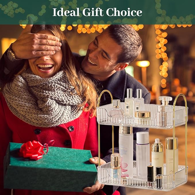 Aveniee Bathroom Counter Organizer, 2 Tier Perfume Skin Care Countertop Storage Shelf, Vanity Makeup Tray for Cosmetic Skincare Lotion,Clear